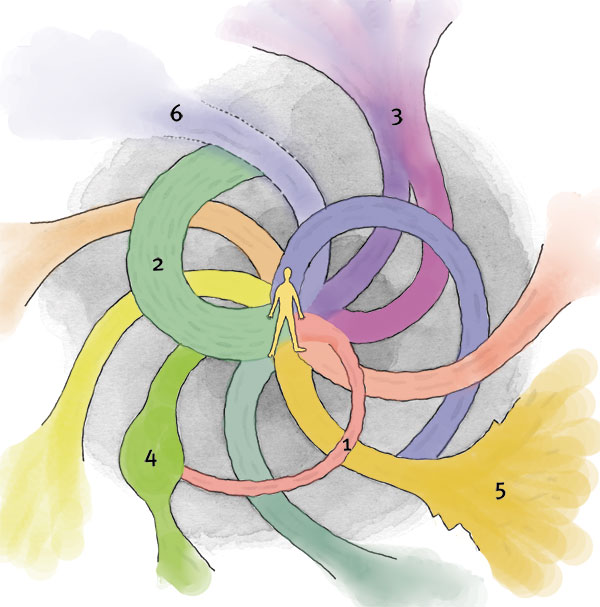 Try looking at the world around you as composed not of separate fixed things, but as structures reflecting the energy that creates them - a vast dance with a myriad of participants. We have shown an idealized model of wellness based on a balanced exchange of energy. But the world is not a perfect place. Like the clogged, contaminated, or empty pipes shown earlier, we experience energy distortions that lead to imbalances in the ways we process energy.